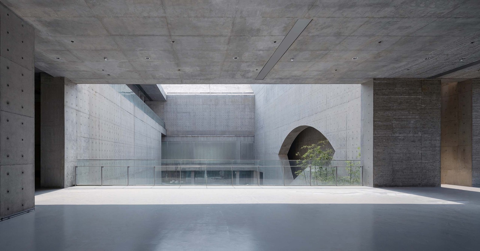 壽縣文化中心采用清水混凝土建設而成,內(nèi)設多個尺度各異的院落被置于相對方正、封閉的矩形塊之中,一條蜿蜒起伏,時上時下的公共廊道將它們串聯(lián)起來。每一個功能擁有兩到三個內(nèi)院,建筑主入口的前院尺度較大,形成了一個公共廣場,意味著壽縣民居中的前院和“堂屋”,建筑后部的后院又有著壽縣民居中“后花園”的味道。這條漫游環(huán)道,引導著人們緩步橋上,穿越水面,步入建筑之中。從前院開始,在不打斷室內(nèi)連續(xù)性的前提下,人們可以穿梭游覽于,布滿了很多內(nèi)院的整個建筑。沿著這個可遮陽避雨的環(huán)形廊道,參觀者時而在一層,時而又到了二、三層,空間變幻莫測,光影時明時暗,去探索發(fā)現(xiàn)令人意想不到的驚喜,感悟“藏、息、修、游”所賦予中國傳統(tǒng)建筑的藝術(shù)精神。