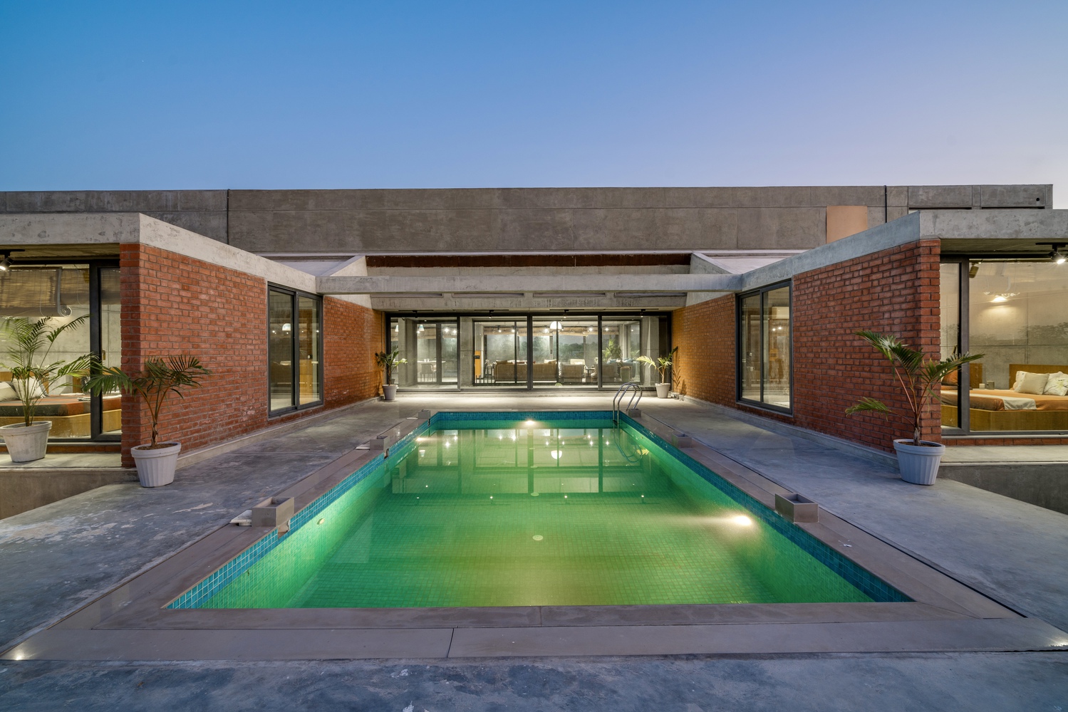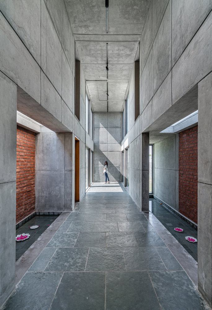 雙灣之家采用清水混凝土澆筑而成,從內(nèi)至外均采用清水混凝土做舊效果設(shè)計(jì)。建筑由南至北向兩端延伸空間,建筑與周圍的自然田園默契的相互融合。無論是黑夜或者白天雙彎之家給人們帶來一種神密之所在。
