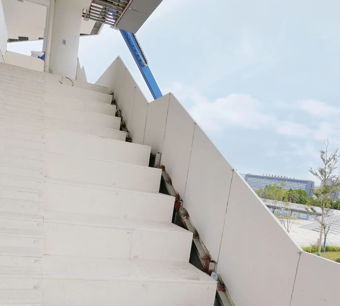 屋面檐口及走道護欄裝飾采用砼創(chuàng)生產(chǎn)的UHPC超高性能混凝土掛板,純白色清水面的UHPC板簡約并不簡單。