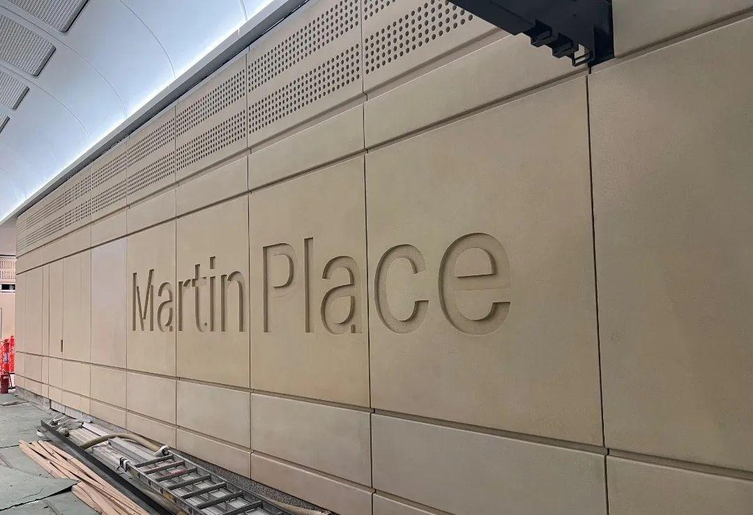 Martin Place站是悉尼地鐵的標志性站點,項目同樣也是采用GRC幕墻材料,其裝飾設(shè)計體現(xiàn)了GRC材料的技術(shù)創(chuàng)新。車站采用大尺度GRC曲面吊頂尤為引人注目,通過精確的模具制作和安裝技術(shù),營造出美觀的整體效果,進一步提升了材料的性能和表現(xiàn)力。GRC材料的輕質(zhì)特性使得大跨度吊頂成為可能,同時其良好的聲學性能提升了車站的聲環(huán)境質(zhì)量。